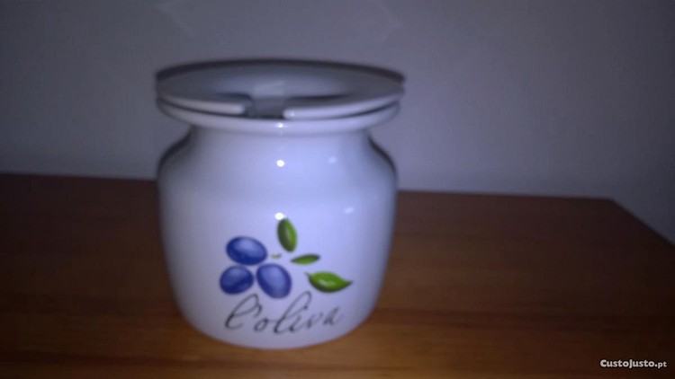 Preço: 6 €Pote em loiça para azeitonas com tampa