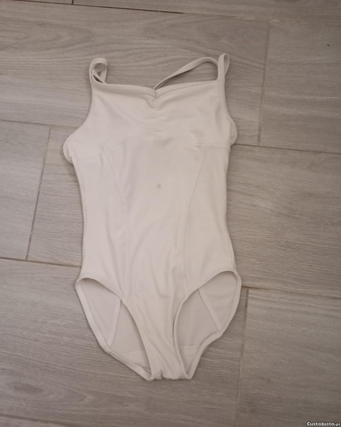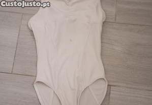 Maillot de ballet em cor branco/cru, da marca Decathlon, ideal para aulas de dança ou ginástica.