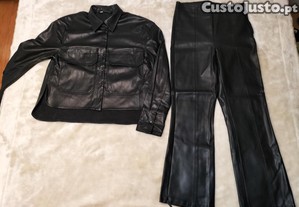 Calças e casaco/blusa Zara, em imitação de pele.
