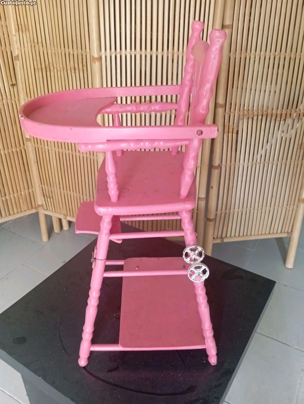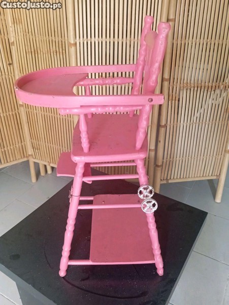 Cadeira de bonecas antiga em madeira com várias funções