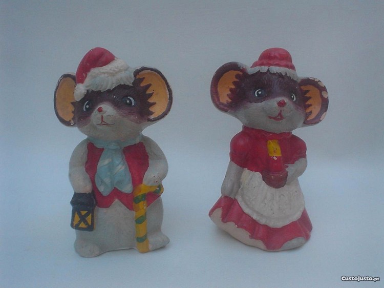 Preço: 6 €2 Esculturas antigas em barro pintado - Ratinhos