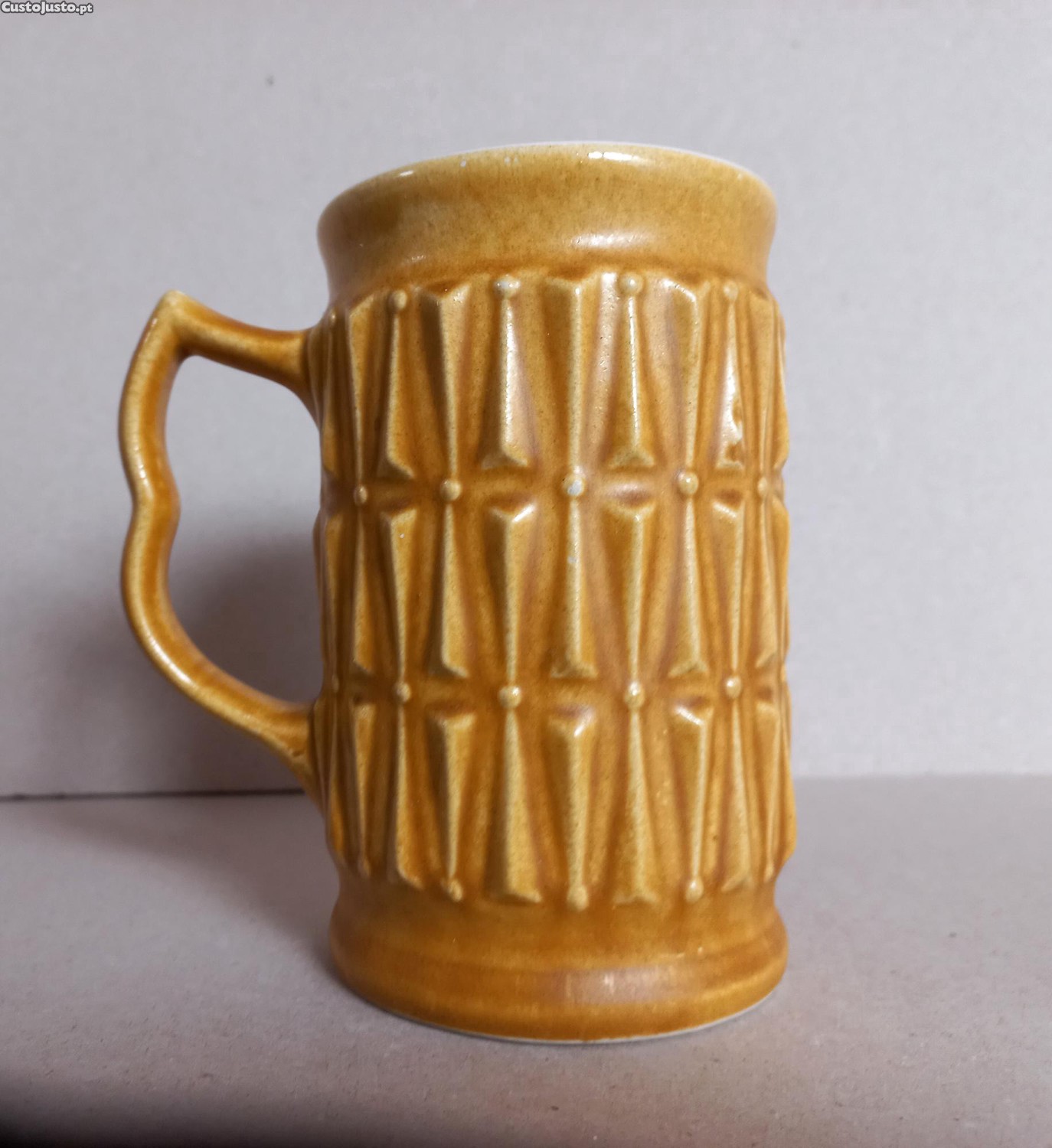 Caneca Secla com padrão texturizado e geométrico em relevo. Cor Mel.