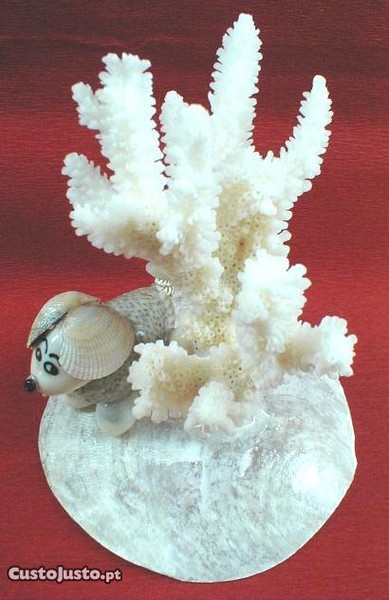 Preço: 3 €Cão feito de concha com coral 8x7cm