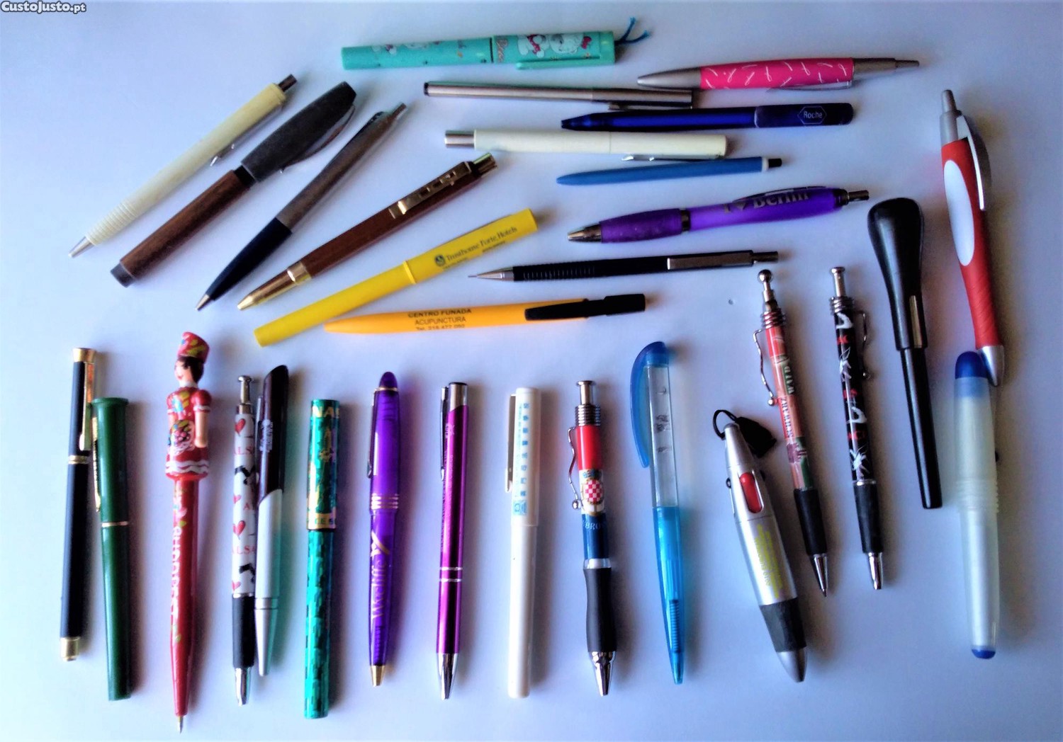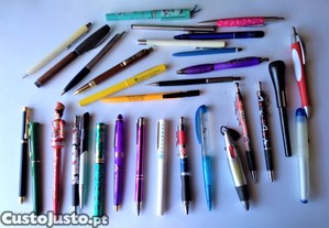 Conjunto de 31 esferográficas com publicidade. Ver descrição