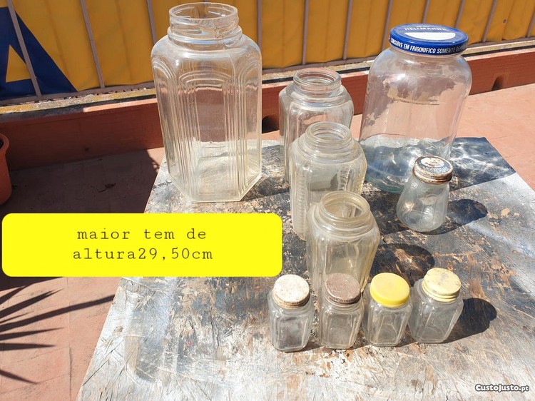 Vendo frascos antigos da época quando se vendia tudo a Vulso o grande tem 29,5cm altura médio altura 17cm largura 10cm o pequeno altura 9cm largura 4,5cm diversos preços
