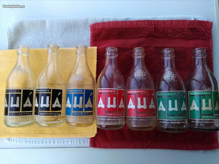 vendo garrafas antigas da marca AUÁ diversas cores algumas com logotipo no gargalo e outras não tem e dizeres a trás e a frente diferentes,5EUR cada, menos as pretas que é 10EUR cada,todas impecáveis