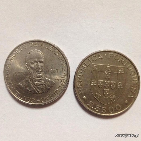 Moeda de 25$00 centenário da morte de Alexandre Herculano 1877 a 1977.