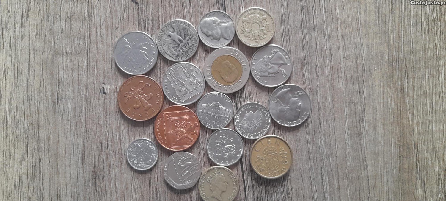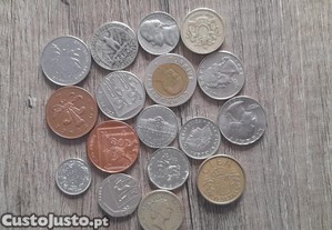 Moedas antigas de vários países, valores nominais diversos e datas variadas, dos anos 60, 70, 80, 90 e 2000; sendo a mais antiga de 1967. Valor sob consulta!