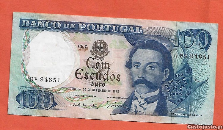 Preço: 2 €Nota de 100$00 de 1978 C. C. Branco