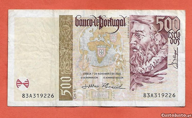 Preço: 3 €Nota de 500$00 07/11/2000