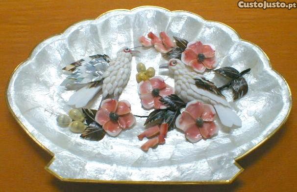 Prato de nácar com pássaros 23x32cm