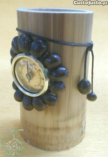 Termómetro e suporte caneta em bambú 9x5cm