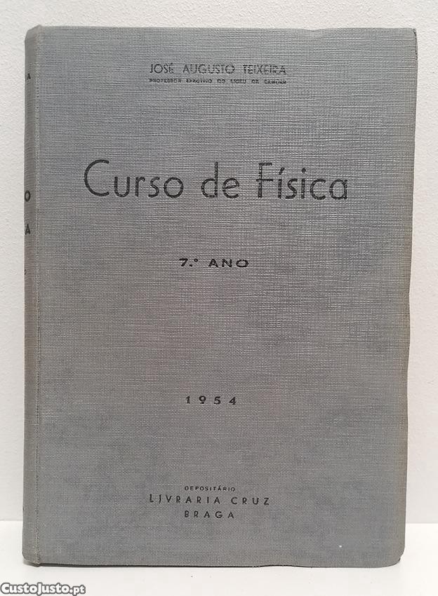 Curso de Física - 7º Ano (1954). De José Augusto Teixeira. Edição em capa dura. Relativo bom estado, tendo em conta a idade do livro.