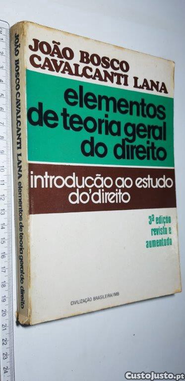 Elementos de Teoria Geral do Direito João Bosco Cavalcanti Lana Editôra Civilização Brasileira Edição Brasileira Sem anotações ou sublinhados. Com assinatura de posse. 17/18/19BB1