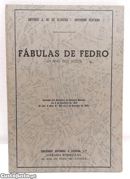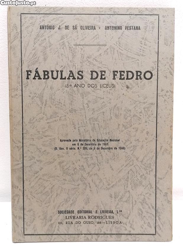 Fábulas de Fedro (5o ano dos Liceus) - 1943. De António J. de Sá Oliveira e Antonino Pestana. Edição antiga em capa dura, algum desgaste, páginas amareladas, assinatura no interior, escritos nalgumas páginas, estado satisfatório.
