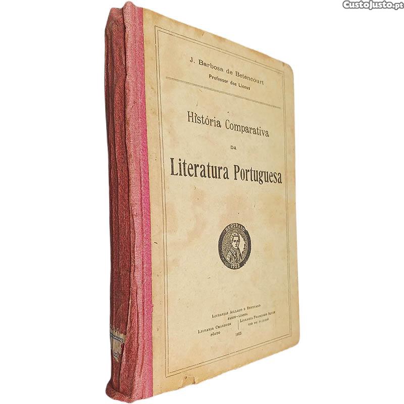 História comparativa da literatura portuguesa J. Barbosa de Betencourt Livraria Aillaud e Bertrand / Livraria Chardron / Livraria Francisco Alves O livro apresenta um vinco na lombada que fragiliza a ligação entre a segunda capa e a folha de guarda. Com pequeno escrito a lápis na primeira página. Y87