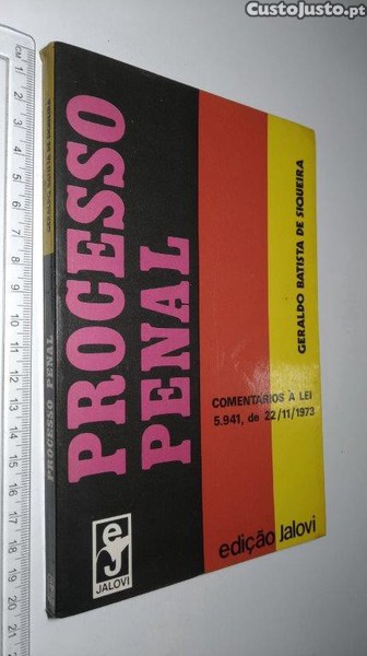 Processo Penal (Comentários à Lei 5.941) Geraldo Batista de Siqueira Editora Jalovi Edição Brasileira Sem anotações ou sublinhados. Com assinatura de posse. 20/24BB2