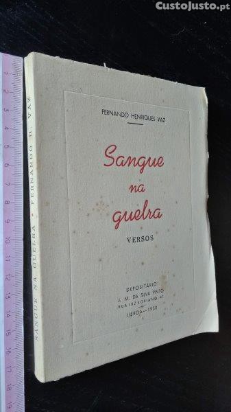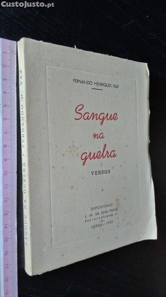 Sangue na guelra Fernando Henriques Vaz Livro com dedicatória do autor. Lisboa, 1950. 5B2