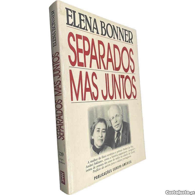 Separados mas juntos Elena Bonner Publicações Europa-América Colecção Estudos e Documentos A mulher do físico soviético e prémio Nobel da Paz, Andrei Sakharov, conta a história angustiante, integral e isenta de censura dos anos de exílio na cidade de Gorki. Posfácio da autora para a edição portuguesa. SAL-D23-X