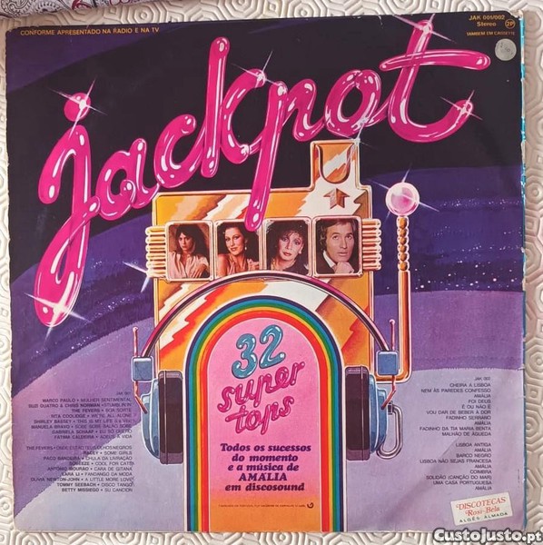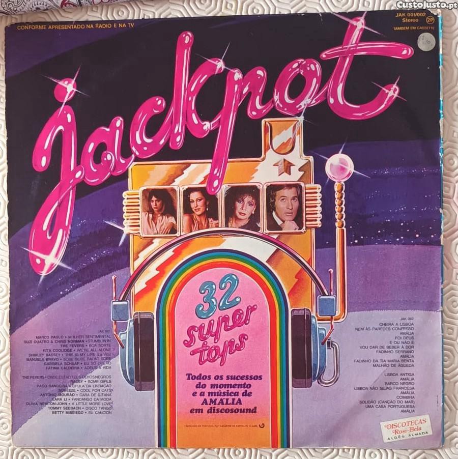 Compilação de êxitos Jackpot com 32 Super Tops. Inclui Todos os sucessos do momento e a música de Amália em discosound.