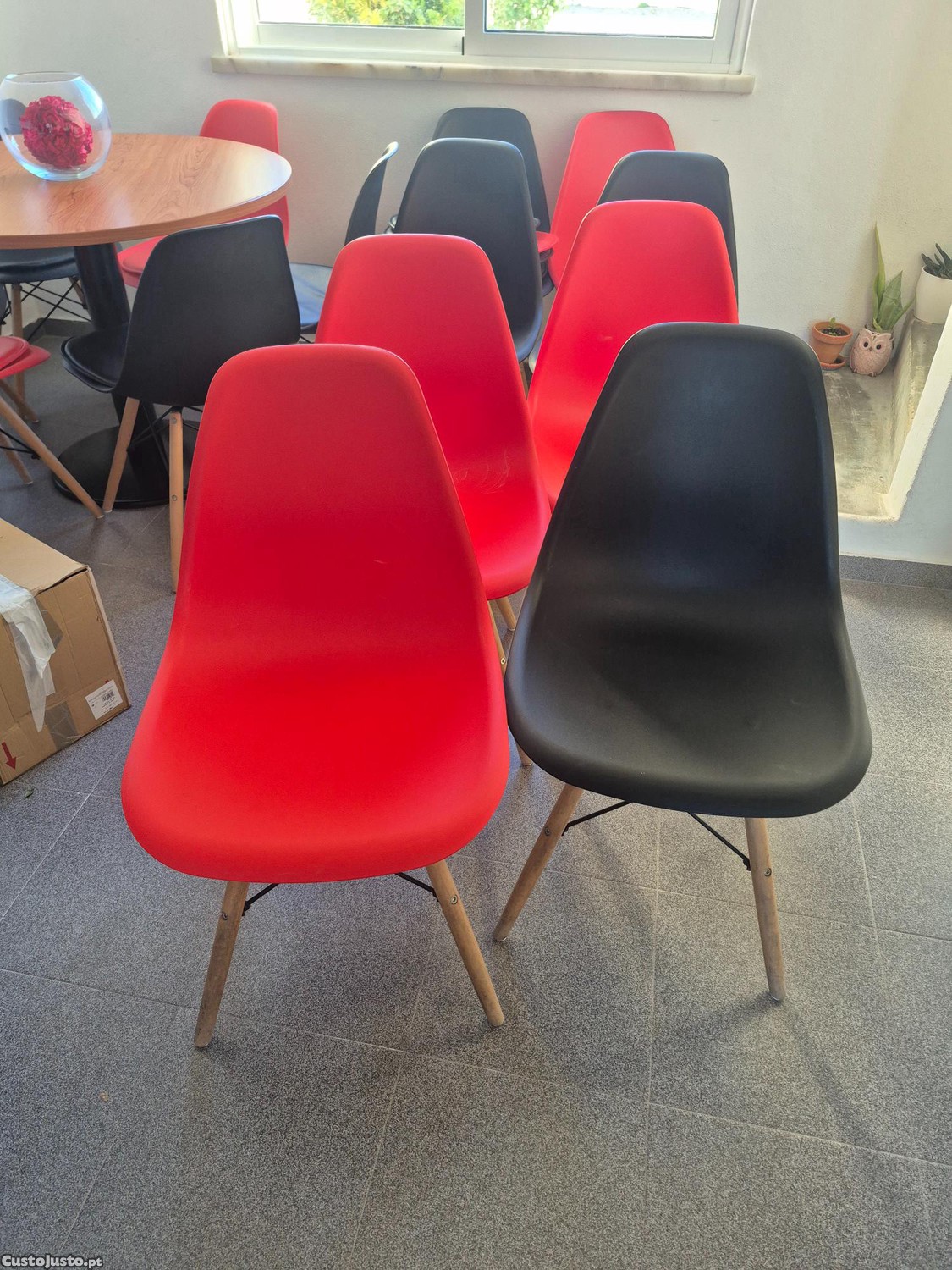 Vendo cadeiras de design Tulipa, ergonómicas e muito versáteis. Estão em excelente estado de conservação, ideais para sala de jantar, escritório ou cozinha. Disponíveis em duas cores sólidas: Preto e Vermelho.