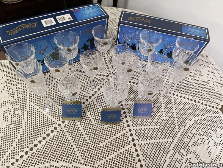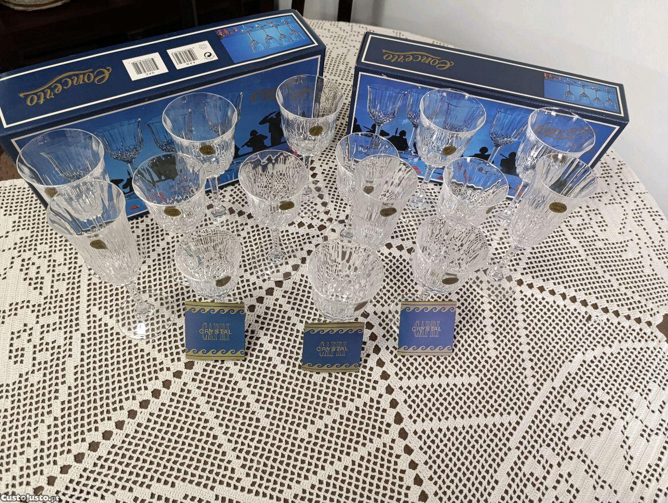 Conjuntos de 8 copos Capri Crystal, todos com etiqueta original ,caixas incluídas e em estado novo. Cristal de alta qualidade,brilho excelente e ideal para coleção ou mesa especial