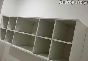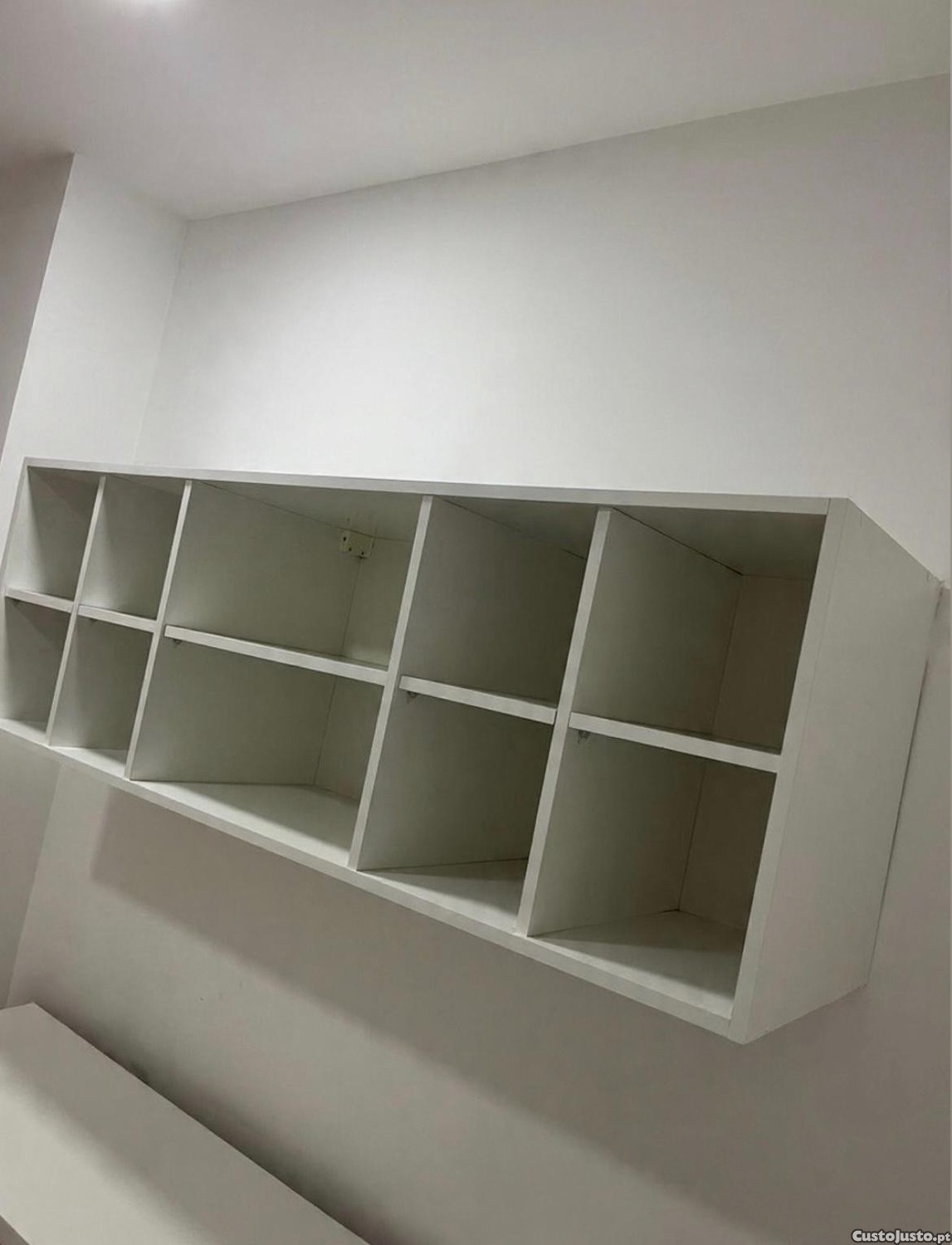 Vendo estante suspensa de alta qualidade, executada por medida em carpintaria (não é mobiliário de montagem rápida). Design minimalista com 8 nichos/cubos, ideal para organização e exposição de produtos em gabinetes de estética, saúde ou escritórios.