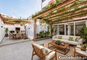 O logradouro privativo de 30 m², pavimentado e murado, inclui churrasqueira com ponto de água, espaço ideal para refeições ao ar livre, convívio ou simplesmente descomprimir após o trabalho. Uma raridade num apartamento desta tipologia.