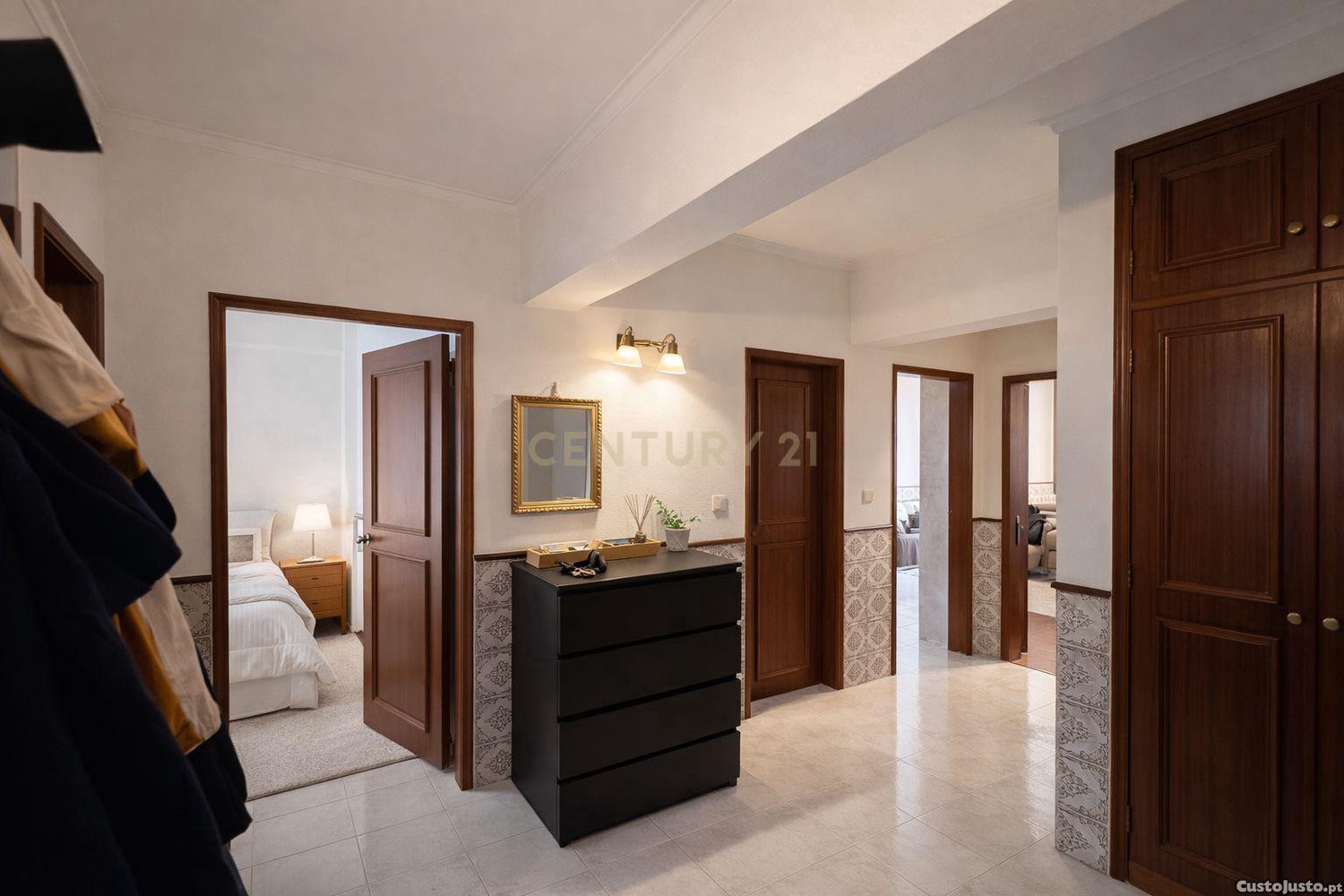 O apartamento apresenta uma disposição funcional, com dois quartos espaçosos que oferecem conforto e privacidade. A sala de estar é ideal para momentos de convívio, enquanto a cozinha, embora compacta, é prática e eficiente. Este espaço é perfeito para quem procura um lar que combine conforto e funcionalidade.