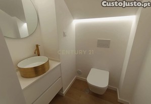 R/C : hall de entrada, 1 WC de serviço, cozinha totalmente equipada com placa vitro cerâmica, combinado, máquina de lavar loiça, forno e microondas tudo encastrado.
