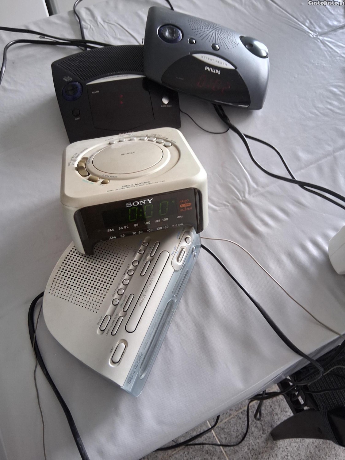 Rádios despertador Sony e Philips em bom estado. Funcionam perfeitamente e são ideais para acordar de manhã com música. O preço pedido é pelos 4 rádios, se em separado: