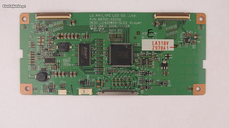 Tcon retirada de aparelho marca Philips modelo 42PFL5522D com ecrã partido