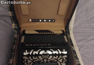 acordeon com 3 vozes , 26 teclas, 5 registos e 48 baixos.