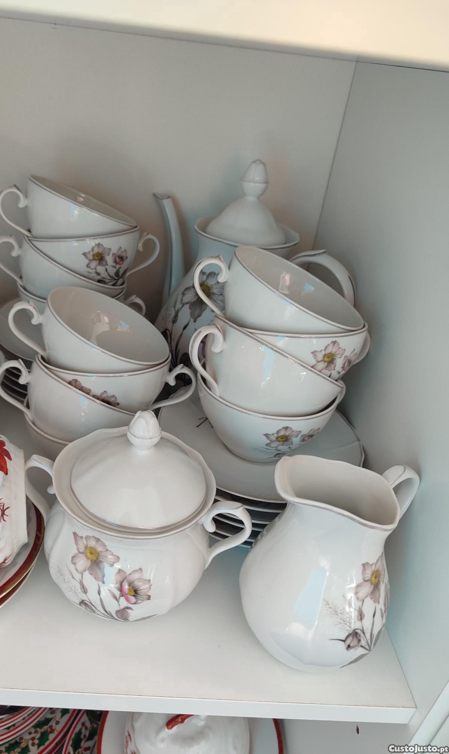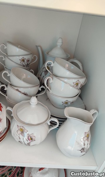 Serviço de12 chávenas mais pires,bule,leiteira e açucareiro da SPAL com 70 anos em muito bom estado.