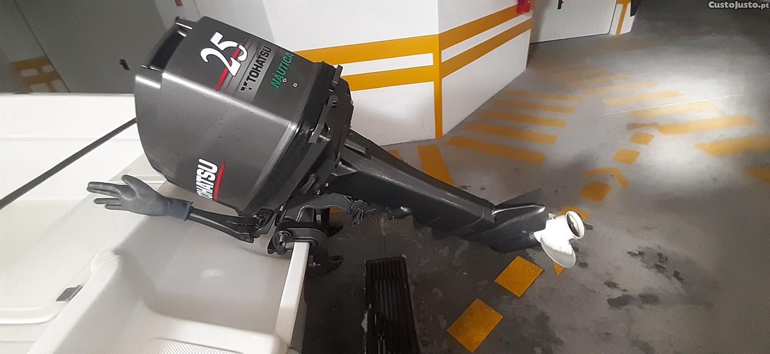 Barco Sabor 400 com motor tohatsu 25cv a 2 tempos com arranque eléctrico e arranque manual e com atrelado de estrada utiliza matrícula do carro, todo o conjunto é do ano 2002 e está imaculado muito poucas utilizações.