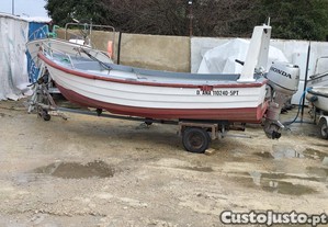 Barco Fibramar modelo Pescador com 4,60 m de comprimento , 1,78 m de boca e 0,73 de pontal , lotação 5 pessoas , ano 1987 , classe 5 e com vistoria válida até 2031 , equipada com motor Honda de 20 hp a 4 tempos com arranque eléctrico revisão , bateria , palamenta completa, atrelado sem livrete , circula com a matrícula do veiculo rebocador ! Atenção não há interesse em trocas nem retomas ! Preço um pouco negociável . Tenho MB WAY anti- fraude e valorizo o contacto pessoal , não perco tempo com mensagens .