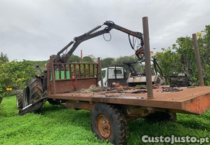 Inclui grua florestal com pinça , para carga e transporte de madeira.