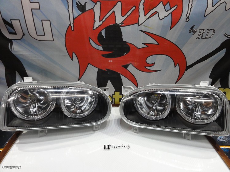 Preço: 179 €Faróis frontais angel eyes fundo preto VW Golf 3/III