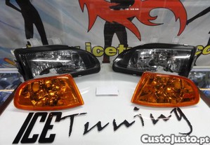 Farois frontais JDM look fundo preto com LED H4 6000k Honda civic 92-95, 4 portas EG8, EG9, EH8, EH9 + piscas frontais fundo lar