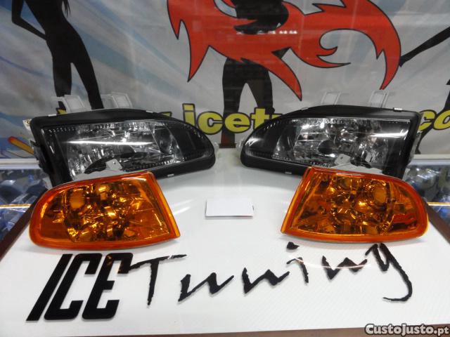 Preço: 189 €Farois frontais JDM look fundo preto com LED H4 6000k Honda civic 92-95, 4 portas EG8, EG9, EH8, EH9 + piscas frontais fundo lar