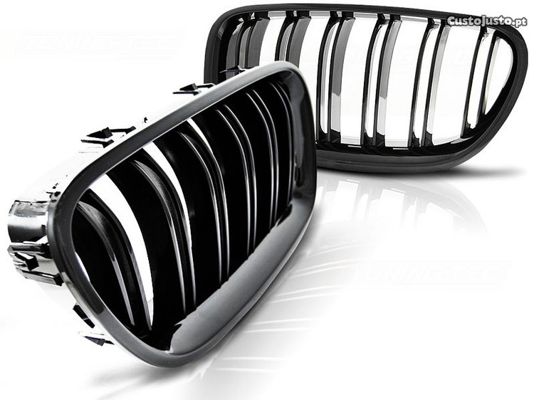 Grelha BMW Serie 5 F10 F11 de 10-16 Em Plastico ABS de lamina dupla preto brilhante