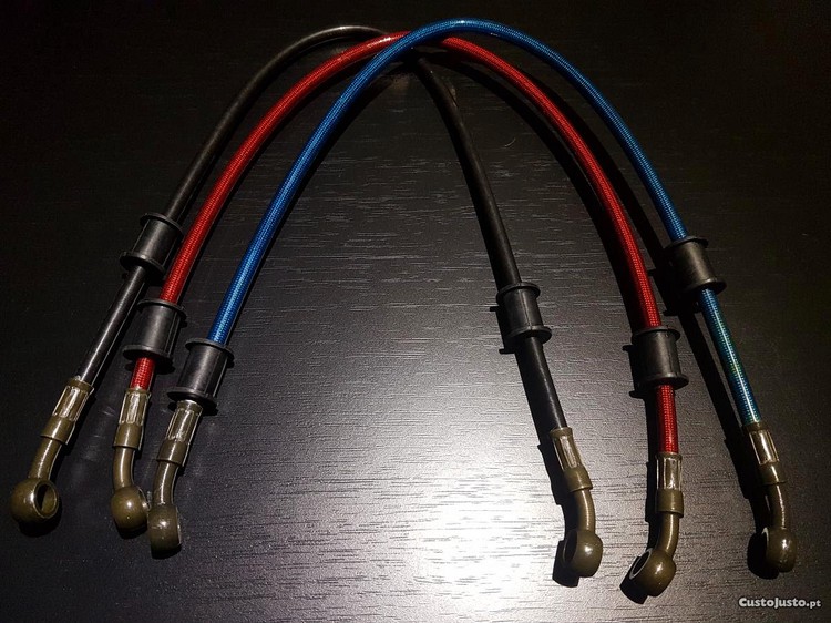 Vendo tubos de travão em malha de aço indicados para travão traseiro Tenho disponível varios tubos em azul ( já não tenho outras cores)