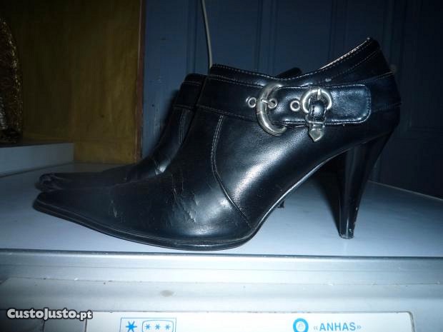 Botim senhora, tamanho 38, com fechos laterais, bicudas, usadas mas em bom estado.