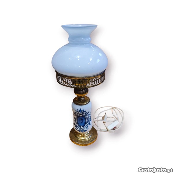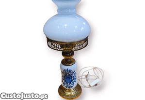 Candeeiro Louça Viana Azul e Branco c/ Vidro Opalino e Base Dourada 41 cm