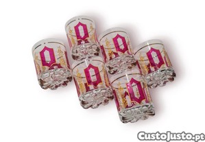 Ideais para servir digestivos, licores ou para uso decorativo numa cristaleira. Peças vintage, raramente encontradas em conjunto completo e em tão bom estado.