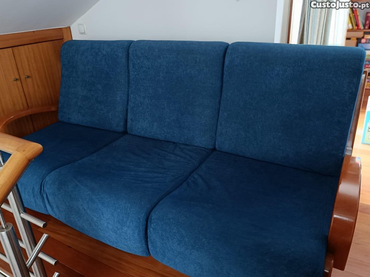 > Estofados em tecido azul, confortáveis