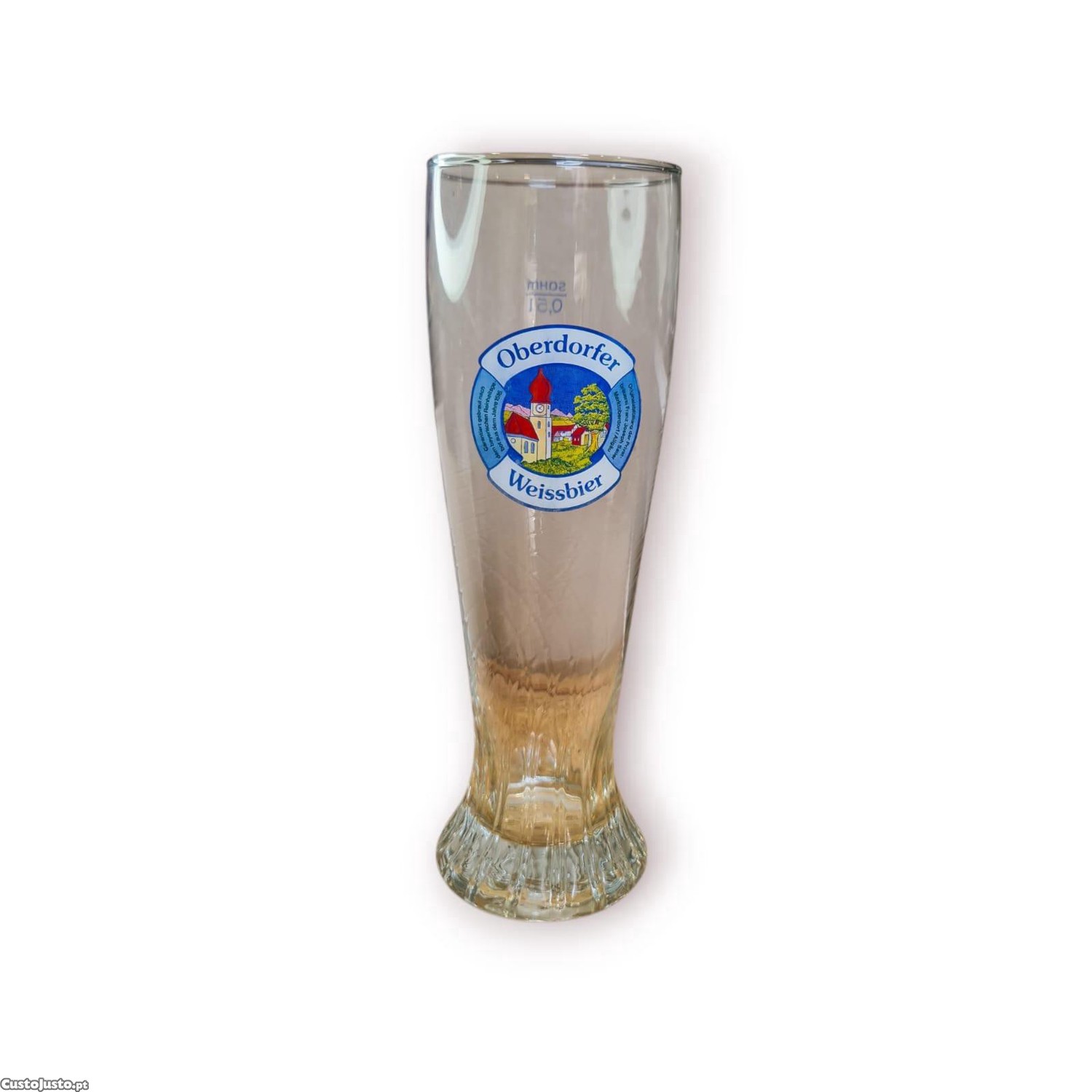 Vidro oficial Oberdorfer Weissbier com decalque a cores