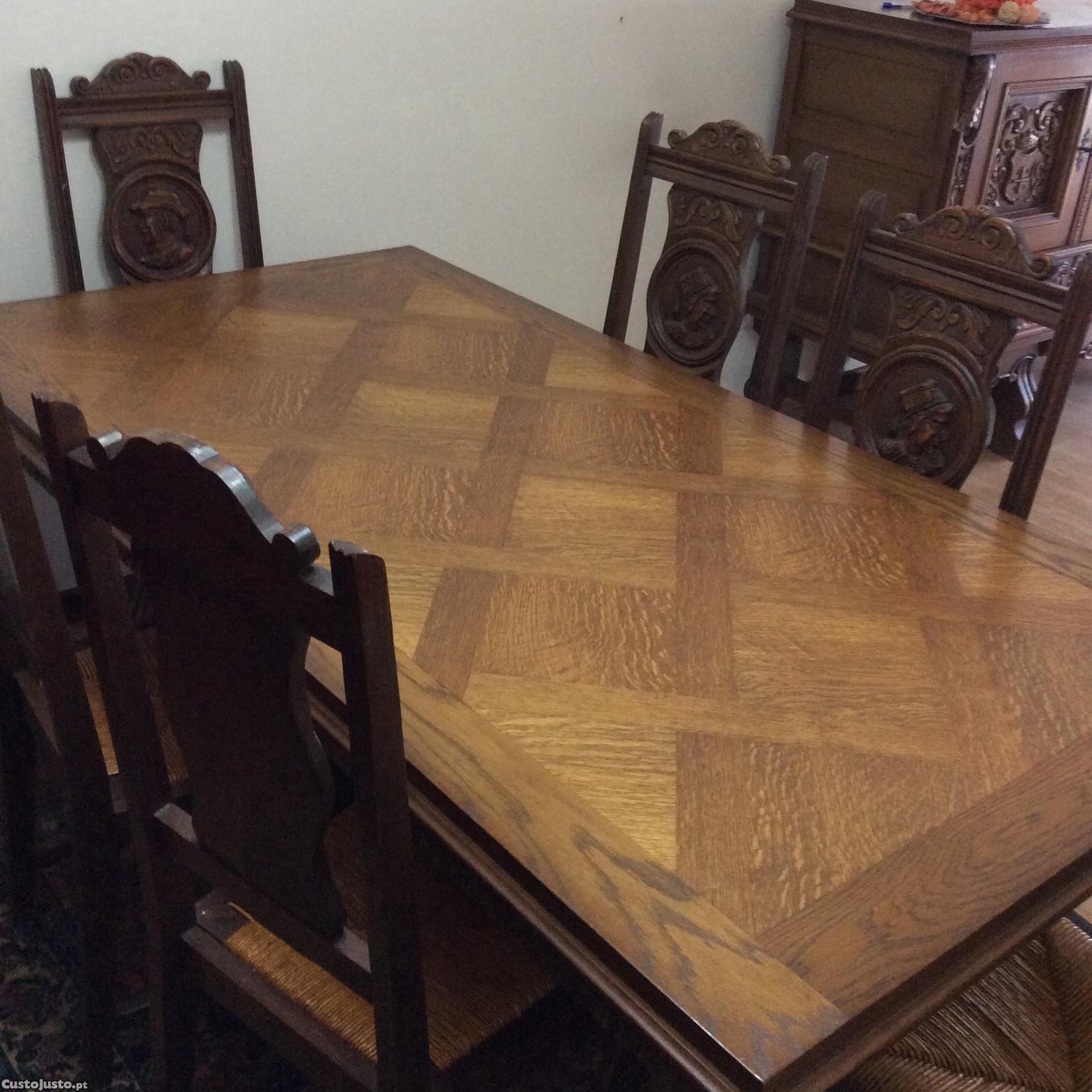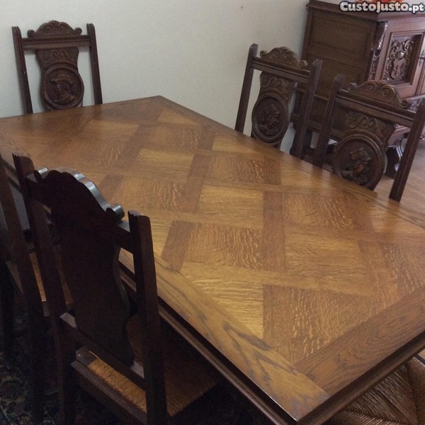 Mesa de jantar com 6 cadeiras maciças Excelente estado