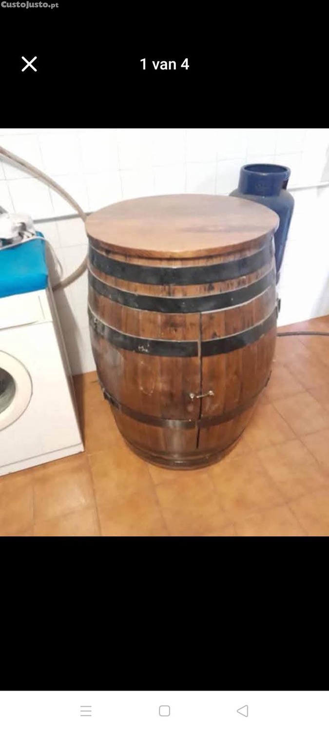 Muito bonita e bem feite. Precisa de limpar e dar producto sa madera para dar o brilho. Tamanho. Altera +- 97 cm, largura +- 70 cm. Diâmetro da mesa de cima 63 cm.