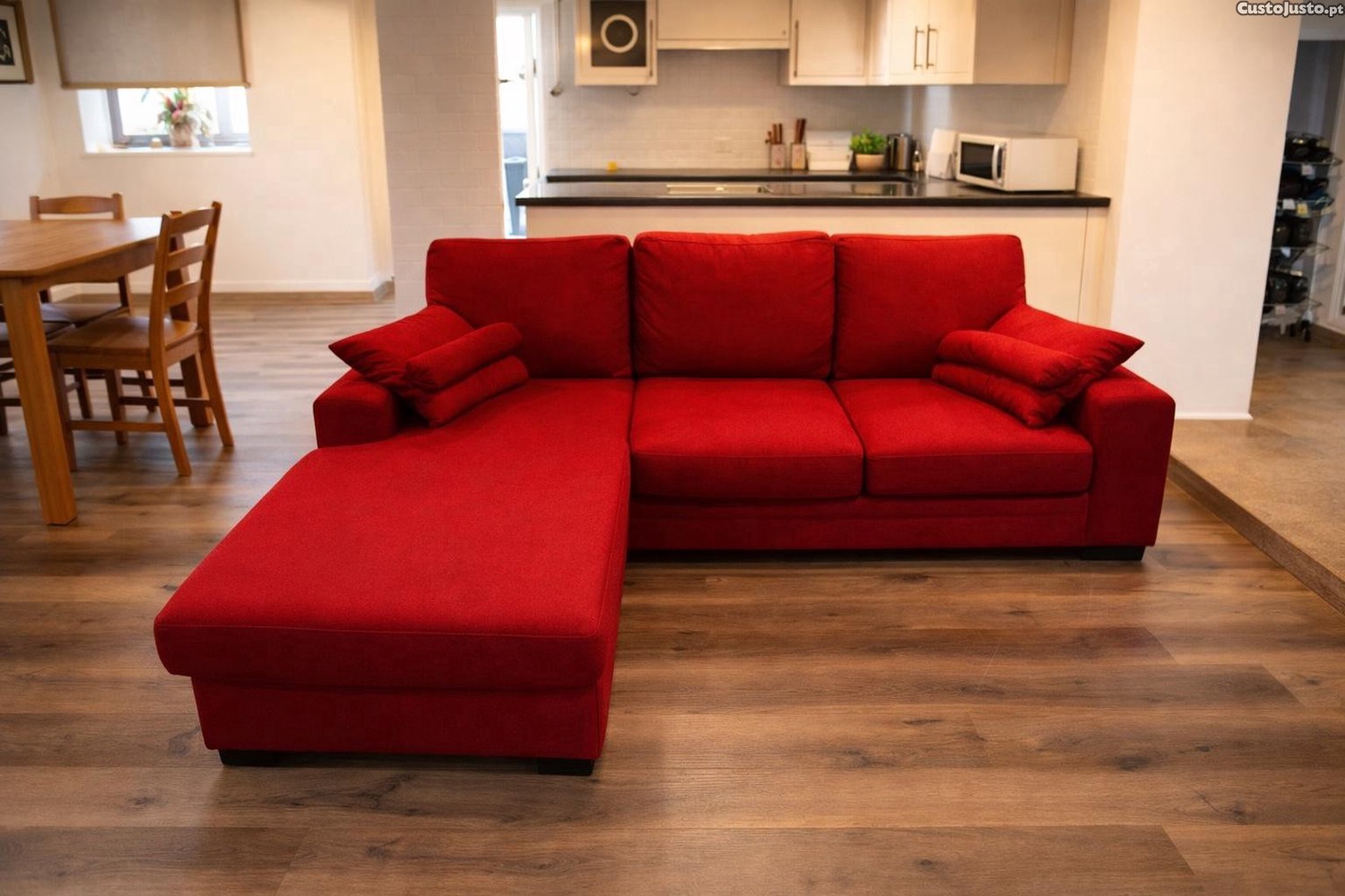 Sofá Chaise Longue Vermelho Moderno, Confortável e em Ótimo Estado